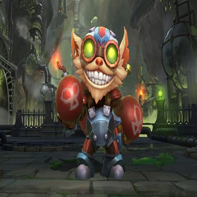 This is a picture of Ziggs, a fictional character, who is a champion with the title of Explosive Specialist in the game League of Legends.