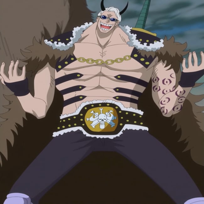 This is a photo of Sheephead, a fictional character who is the head of the Gifters team of the Beasts Pirates in the One Piece manga.
